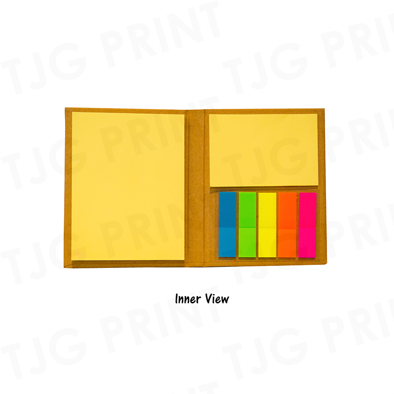 Inside, it includes an eco-friendly notepad along with a convenient sticky notepad. Perfect for quick reminders, ideas, and important notes. A functional and thoughtful option for both personal use and corporate stationery.