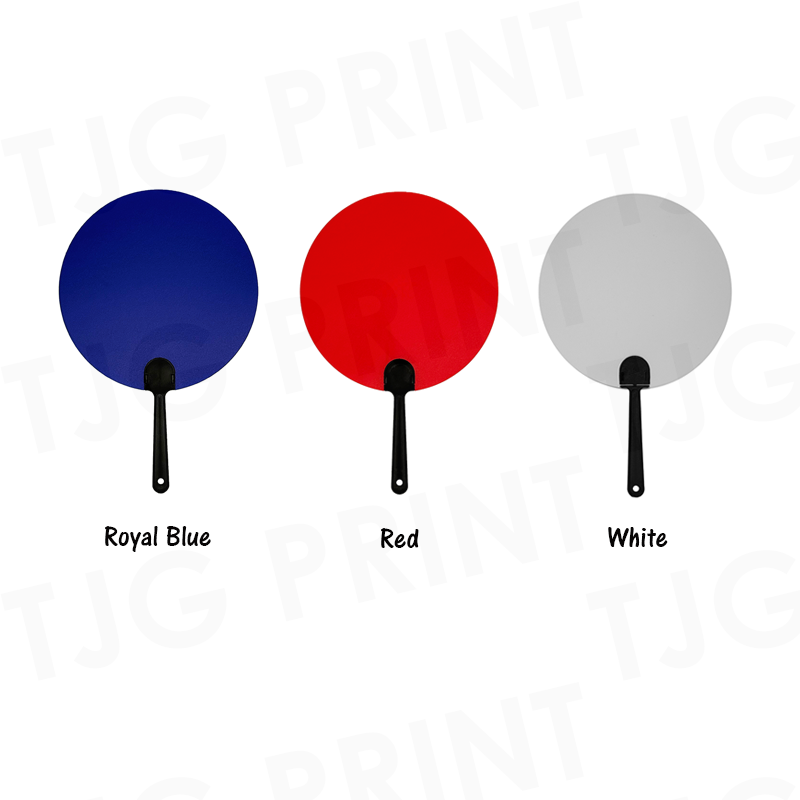 Custom print hand fan, made from durable plastic, this fan feature a circular area that makes your logo, message, or artwork stand out effortlessly. Perfect for outdoor events and promotions. Fully customisable with UV Print or Silkscreen printing.