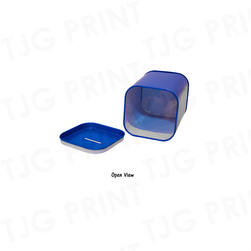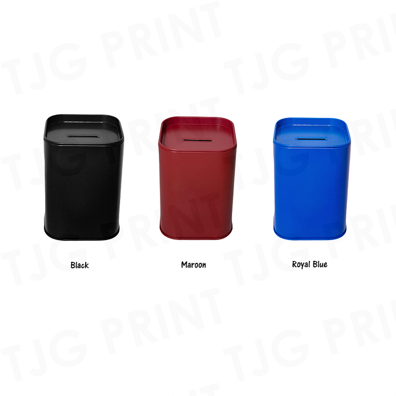 The SA28 Coin Box made of durable tin, offering a classic and sturdy design for storing loose change. Its smooth finish makes it perfect for custom printing.